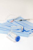 maska chirurgiczna kapsułki lecznicze i termometr na białym tle
