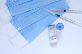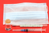 maska chirurgiczna kapsułki lecznicze i termometr na białym tle