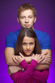 Portret zakochanej pary, odizolowanej na białym tle.