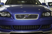 Vorkuta, Komi / Russia - 04 11 2017: Audi niebiesko-fioletowy samochód sedan w myjni samochodowej po oczyszczeniu w kropelkach wody