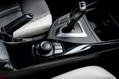 Idealna powierzchnia plastiku we wnętrzu samochodu jest czarna po polerowaniu i czyszczeniu chemią samochodową