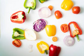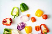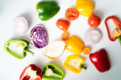 Kolorowe słodkie pieprz z wielu beta karotyny warzyw na białym tle flatlay