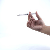Zdjęcie "Strzykawka, zastrzyk medyczny w ręku, sprzęt do szczepień z tworzywa sztucznego z igłą wyizolowaną na białym tle. ścieżki wycinania." może być wykorzystywane do celów osobistych i komercyjnych zgodnie z warunkami zakupionej licencji Royalty-free. Obraz jest dostępny do pobrania w jakości wysokiej rozdzielczości do 5760x3840.