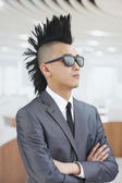 Biznesmen patrzący w kamerę