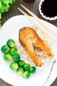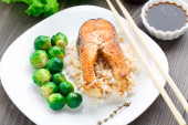 Zdjęcie "smażony łosoś z ryżem i brukselka" może być wykorzystywane do celów osobistych i komercyjnych zgodnie z warunkami zakupionej licencji Royalty-free. Obraz jest dostępny do pobrania w jakości wysokiej rozdzielczości do 5760x3840.