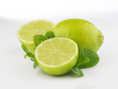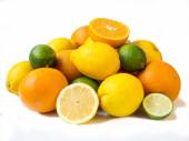 świeżych owoców cytrusowych z liści w wiklinowym koszu