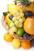 świeże owoce w wiklinowym koszu