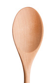 Drewniana łyżka izolowana na białym tle. Widok z góry
