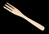 Drewniany widelec izolowany na białym tle. Widok z góry