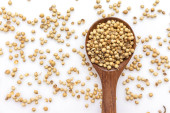Zdjęcie "nasiona kolendry widok z góry na białym tle." może być wykorzystywane do celów osobistych i komercyjnych zgodnie z warunkami zakupionej licencji Royalty-free. Obraz jest dostępny do pobrania w jakości wysokiej rozdzielczości do 5760x3840.