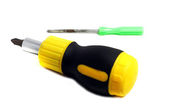 Szczypce i śrubokręt żółty izolowane na białym tle