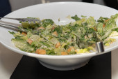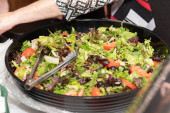 Zdjęcie "Sałatka z krewetek na zielonej sałatki liście łóżko, śniadanie w formie bufetu danie specjalne. Wystawa żywności podczas cateringu lub prywatnej imprezy biznesowej. Świeże owoce morza podawane z kremowym sosem białym" może być wykorzystywane do celów osobistych i komercyjnych zgodnie z warunkami zakupionej licencji Royalty-free. Obraz jest dostępny do pobrania w jakości wysokiej rozdzielczości do 5760x3840.