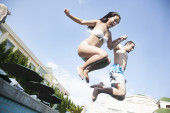 Zdjęcie "Ojciec i córka, skoki do basenu" może być wykorzystywane do celów osobistych i komercyjnych zgodnie z warunkami zakupionej licencji Royalty-free. Obraz jest dostępny do pobrania w jakości wysokiej rozdzielczości do 5760x3840.