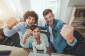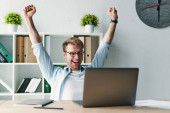Młody, przystojny, senny biznesmen relaksuje się opierając się na fotelu biurowym z zamkniętymi oczami i podniesionymi ramionami, czekając na koniec godzin pracy.