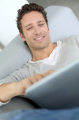 Zdjęcie "Człowiek korzystający z tabletu cyfrowego" może być wykorzystywane do celów osobistych i komercyjnych zgodnie z warunkami zakupionej licencji Royalty-free. Obraz jest dostępny do pobrania w jakości wysokiej rozdzielczości do 5760x3840.
