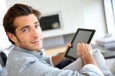 Zdjęcie "Człowiek korzystający z tabletu cyfrowego" może być wykorzystywane do celów osobistych i komercyjnych zgodnie z warunkami zakupionej licencji Royalty-free. Obraz jest dostępny do pobrania w jakości wysokiej rozdzielczości do 5760x3840.