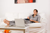 Mężczyzna relaks na kanapie