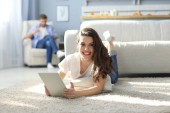 Zdjęcie "wesoły kobieta z tabletem" może być wykorzystywane do celów osobistych i komercyjnych zgodnie z warunkami zakupionej licencji Royalty-free. Obraz jest dostępny do pobrania w jakości wysokiej rozdzielczości do 5760x3840.