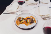 Zdjęcie "Grillowana ośmiornica z warzywami i sosem z mątwy. Restauracja, styl życia, wyżywienie turystyczne - grillowana ośmiornica z warzywami Menu restauracyjne. Włoskie świeże owoce morza." może być wykorzystywane do celów osobistych i komercyjnych zgodnie z warunkami zakupionej licencji Royalty-free. Obraz jest dostępny do pobrania w jakości wysokiej rozdzielczości do 5760x3840.