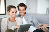 Zdjęcie "uśmiechający się para z tabletem" może być wykorzystywane do celów osobistych i komercyjnych zgodnie z warunkami zakupionej licencji Royalty-free. Obraz jest dostępny do pobrania w jakości wysokiej rozdzielczości do 5760x3840.