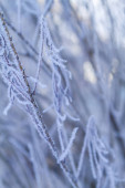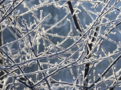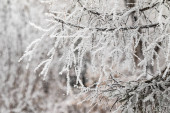Zimowy las, mrożone gałęzie drzew, mróz na gałęziach.