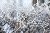 Zimowy las, mrożone gałęzie drzew, mróz na gałęziach.