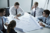 Zdjęcie "Architekci dyskusji nad plan w biurze" może być wykorzystywane do celów osobistych i komercyjnych zgodnie z warunkami zakupionej licencji Royalty-free. Obraz jest dostępny do pobrania w jakości wysokiej rozdzielczości do 5760x3840.