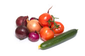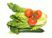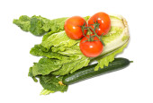 Pomidor, ogórek, kapusta pekińska izolowana na białym tle.