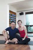 człowiek siedzący ze skrzyżowanymi nogami w zajęciach jogi