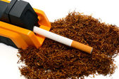 maszyna do wbijania tytoniu w rękaw z tytoniem i rękawami na białym tle. izolat