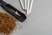 maszyna do wbijania tytoniu w rękaw z tytoniem i rękawami na białym tle. izolat