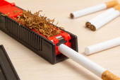 otwarta maszyna do kierowania tytoniem i papierosy na białym tle. izolat