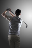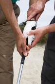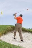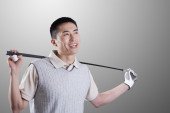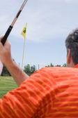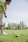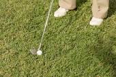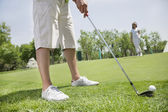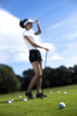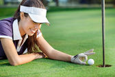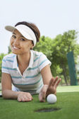 uśmiechający się młoda kobieta, leżącej w pole golfowe