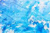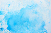 Ręcznie malowany niebieski akwarela abstrakcyjna plama na białym papierze. tło rozprysku farby