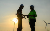 Zdjęcie "inżynierowie stojący obok turbiny wiatrowej" może być wykorzystywane do celów osobistych i komercyjnych zgodnie z warunkami zakupionej licencji Royalty-free. Obraz jest dostępny do pobrania w jakości wysokiej rozdzielczości do 5760x3840.
