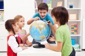 nauczyciel nauczania geografii dla dzieci w wieku szkolnym z globusem