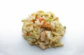 Winegret różnych gotowanych warzyw na łyżce na białym tle