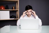 Zdjęcie "Portret młodego azjatyckiego biznesmena wyglądał na zmęczonego i cierpiał na sztywny ból głowy po zbyt długiej pracy na laptopie." może być wykorzystywane do celów osobistych i komercyjnych zgodnie z warunkami zakupionej licencji Royalty-free. Obraz jest dostępny do pobrania w jakości wysokiej rozdzielczości do 5760x3840.