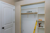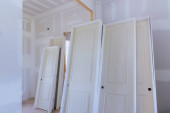 Zdjęcie "Nowy dom, gdzie wnętrze drewniane drzwi szafy instalacji oczekiwania" może być wykorzystywane do celów osobistych i komercyjnych zgodnie z warunkami zakupionej licencji Royalty-free. Obraz jest dostępny do pobrania w jakości wysokiej rozdzielczości do 5760x3840.