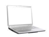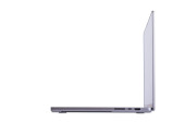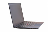 Widok z boku czarny laptop z czarnym ekranem izolowane na białym tle