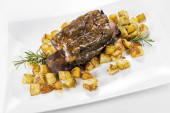 grillowany stek wołowy z szalotką i sosem ziemniaczanym
