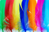 Flaga LGBT malowana na białym tle. Tęczowe pióra gejowskiego symbolu dumy LGBT. Przestrzeń kopiowania, baner