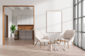 Zdjęcie "Wnętrze stylowej jadalni z białymi i drewnianymi ścianami, drewniana podłoga, długi stół z beżowymi fotelami i roślinami na półkach w pobliżu okna z zamazanym krajobrazem miejskim. 3d renderowanie" może być wykorzystywane do celów osobistych i komercyjnych zgodnie z warunkami zakupionej licencji Royalty-free. Obraz jest dostępny do pobrania w jakości wysokiej rozdzielczości do 5760x3840.