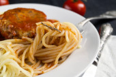 klopsiki mięsne z Penne w sosie pomidorowym.