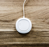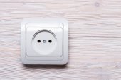 Biała płyta grzewcza ceramiczna lub indukcyjna na drewnianym stole, widok z góry
