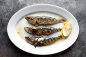 zbliżenie hiszpańskich sardynek w oliwie z oliwek