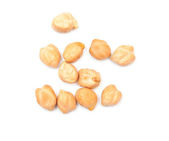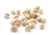 Kupa surowego ciecierzycy wyizolowana na białym tle. Zdrowe wegetariańskie jedzenie. Kawałek niegotowanego ciecierzycy