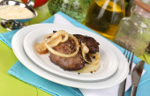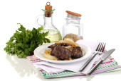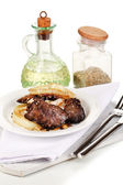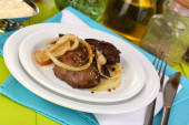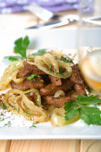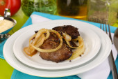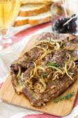 kurczaka smażone wątroby na tabliczce na drewniany stół szczegół