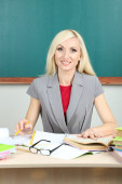 nauczyciel w szkole w pobliżu tablica z folderu w klasie
