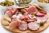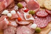 bukiet wędlin i kiełbas, oliwki i przyprawy, szczegół